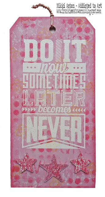 a fabulous motivational tag Nikki..........love the background and Tim's quote really pops in the white xxx Love it