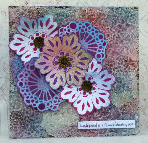 DeleteFabulous textured background Fliss. Those embellishments make a great addition to your stencilled flowers.