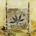 The Carved Leaves were stamped onto Rice Paper (which had been used as under paper when drying eco dyed elements). At this stage, I only adhered each prepared brown packing paper panel to white/greyboard panel, not the stamped leaves.