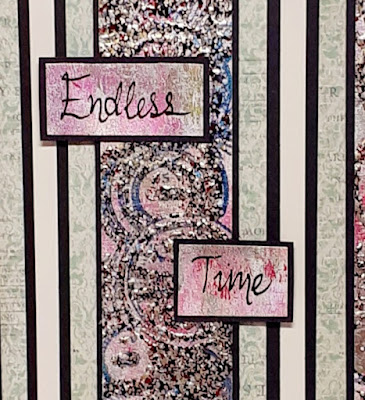 I added wording to some leftover background card, and layered onto black card and added to the front of the piece.