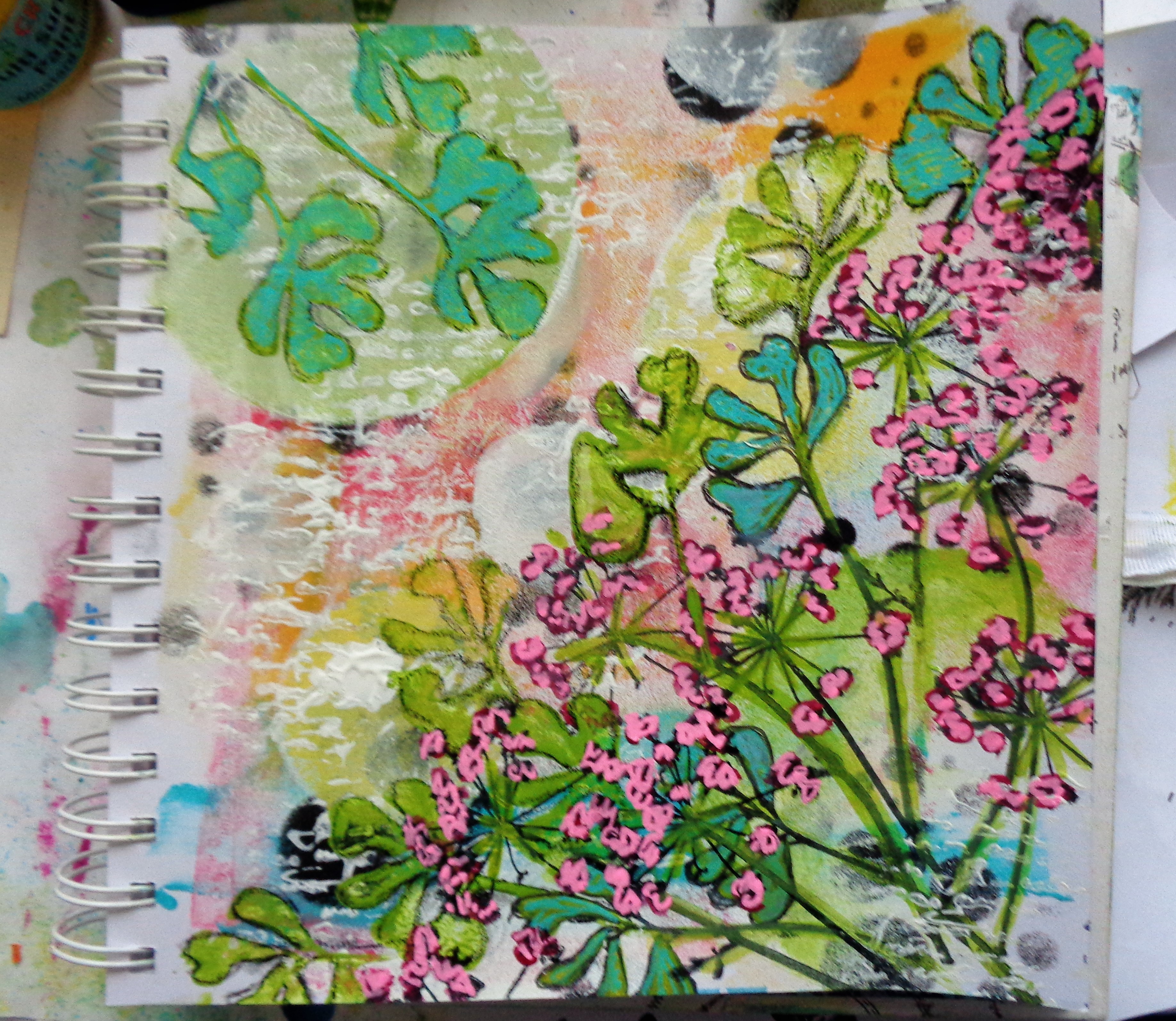 There was a point where I was going to abandon this page as it looking a bit dark, but the white paint and the lime green helped to lift it out of the doldrums!