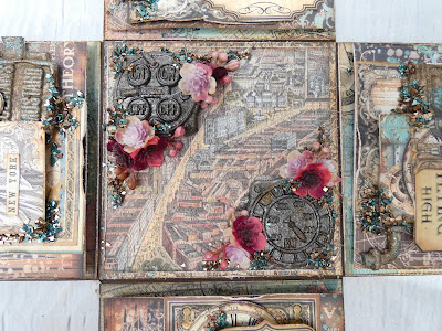 11:00For my blog post this week I have created an exploding box which holds a minialbum and a little card to write your message on. My box has been created from scratch and the papers I chose to work with are Sir Vagabond Aviator 8x 8 and the co-ordinating 8x 8 background paper packs. All papers were distressed and inked with Vintage Photo Distress Oxide.