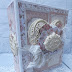 For my embellishments I cast lots of hearts from Hearts mould and a few pieces from the Plates mould using Amazing Casting Resin. Once set these were painted with Allegro Old Ivory and then the details highlighted with gold metallic wax. Whilst I had the wax out I edged 4 x 6" pieces of watercolour card which were then used as photomats in the album.